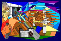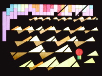 Diese Technik (Fotokarton {70x50[cm]} und farbiges 'Seidenpapier') habe ich bis 83 (P6, Entwurf 75) für 'Abstrakta' angewendet.